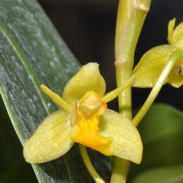 True to its name, Coelogyne prolifera is known for its rapid growth and frequent blooming. It produces clusters of greenish-yellow flowers with a decorative lip.