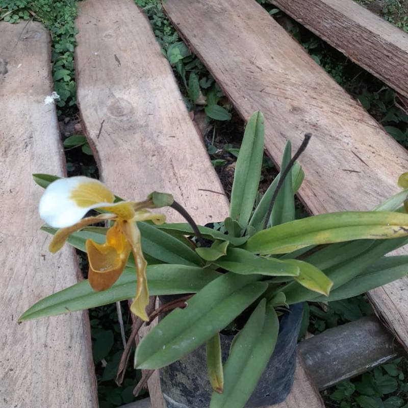 Paphiopedilum Villosum is characterized by its beautiful, soft, hairy petals, which give it a distinct “fuzzy” appearance. This species is relatively easy to grow and produces stunning flowers with a strong, intricate pattern.