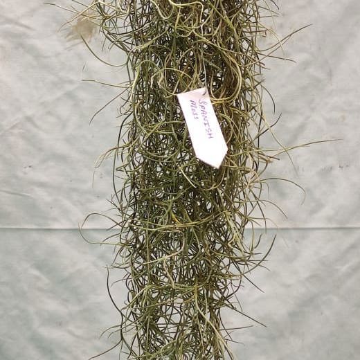 Spanish Moss (Tillandsia usneoides) is a stunning air plant that grows in cascading silvery-grey strands. It’s perfect for adding a tropical feel to gardens, terrariums, or hanging displays without needing any soil.