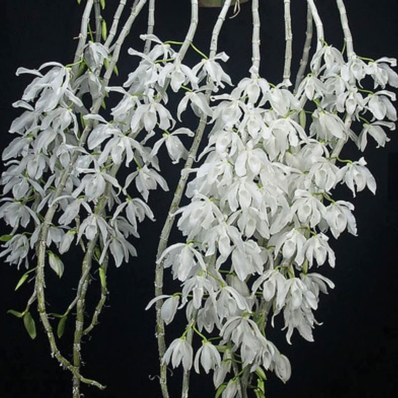 A pure white variant of the beloved Dendrobium anosmum, the 'Alba' form brings a touch of sophistication with the same fragrance and cascading habit.